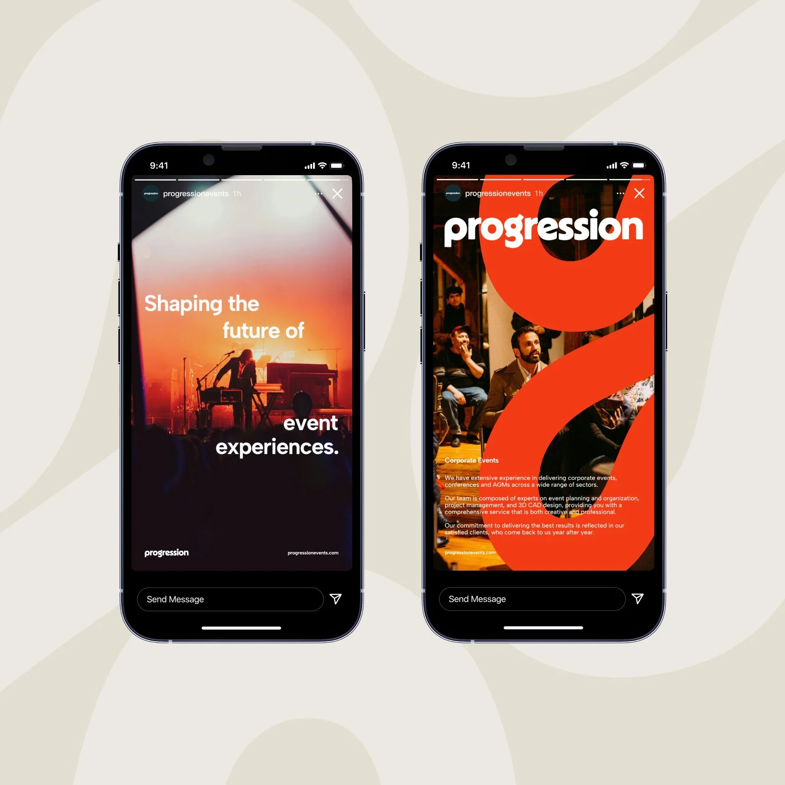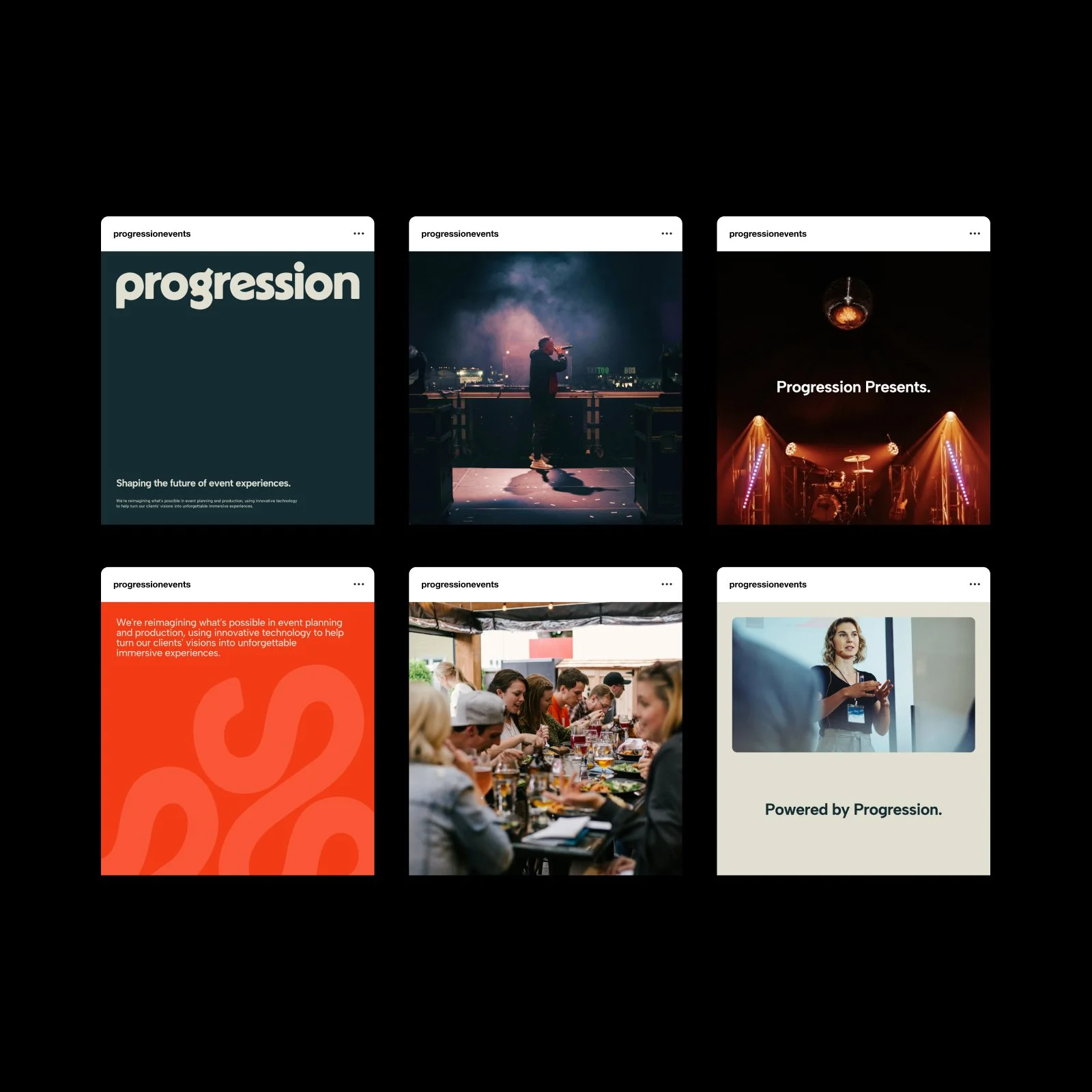 Progression Events, a leader in creative production and technical event design, needed a rebrand that truly reflects their originality and inventive approach. The goal was to create a striking, design-led identity that sets them apart in a stagnant market—appealing to high-end event planners, venues, and private clients.